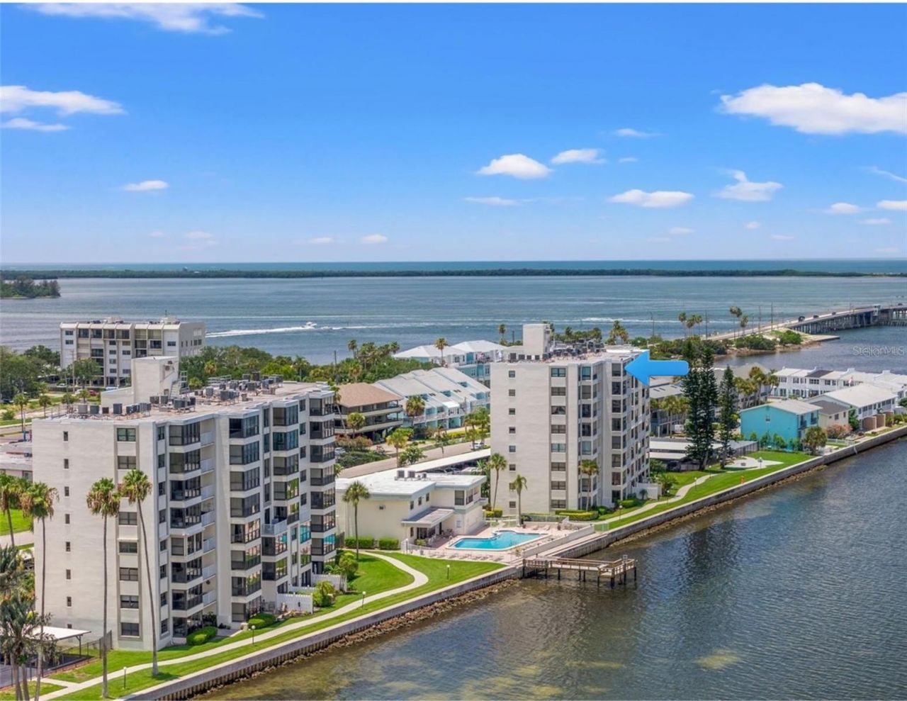Penthouse living on the water in Dunedin where every detail, every view, and every moment feels elevated.A top-floor waterfront residence at this price point on the Dunedin Causeway is increasingly rare... especially one with this level of view, condition, and elevation.Your backdrop is an uninterrupted canvas of shimmering open water and endless sky. This isn't just a view... it's a breathing experience. Watch pelicans glide at eye level, kayakers drift by in the distance, and witness nature's rarest appearances with manatees, stingrays, dolphins, and even the occasional sighting of a rare white dolphin that has been spotted in these waters. No two days are ever the same, and that's exactly the point.And here, the pace slows the moment you step inside... replaced by water, light, and uninterrupted horizon lines in every direction. And it begins the moment you arrive...Inside, the home has been refreshed with a clean, polished feel, featuring fresh paint throughout, updated lighting, new doors, baseboards, and molding. The kitchen includes newer appliances and fixtures along with a breakfast bar perfectly positioned to take in the water views... turning your mornings into an experience. The main living areas are finished with rigid core luxury vinyl flooring, offering both durability and a refined coastal aesthetic.The layout is both functional and thoughtfully designed. A spacious central living area acts as the heart of the home... beautifully separating the split floor plan... offering privacy for guests while maintaining an open, airy flow ideal for everyday living and effortless entertaining.The primary bedroom has its own ensuite bathroom with a remodeled walk-in shower and seated bench. The second bedroom is located on the opposite side of the condo and features a walk-in closet with private access to the guest bathroom, which also opens to the main entryway for guests... creating a flexible and thoughtful layout for hosting.A discreet built-in laundry closet includes a newer stackable washer and dryer. Additional improvements include added pantry storage and a new electrical panel with surge protection... delivering comfort and true peace of mind.Out of your front door and through the kitchen window, you will see sweeping views of award-winning Honeymoon Island and Caladesi Island, and even the iconic shoreline of Clearwater Beach... a rare perspective that instantly sets this residence apart.A private outside storage closet adds additional convenience, and entrance to Island Towers is secure with a lobby gate code.Beyond the residence, the building continues to evolve with meaningful updates, including a new roof, electrical improvements, and ongoing restoration of the clubhouse. The pool area is complemented by a relaxing sauna... creating a true resort-style setting just steps from your door.And then, the lifestyle.Just minutes from the pristine shores of award-winning Honeymoon Island, the ferry to Caladesi Island, and direct access to the Pinellas Trail. Nearby, the vibrant heart of Downtown Dunedin offers boutique shopping, dining, charming caf?s, and a coastal energy that's both relaxed and refined.This is more than a top-floor unit... it's a true penthouse sanctuary with a front-row seat to Florida's most captivating waterfront lifestyle.Imagine the life you could live here... Let's make it a reality!See... Fall in Love... Make it your own!!