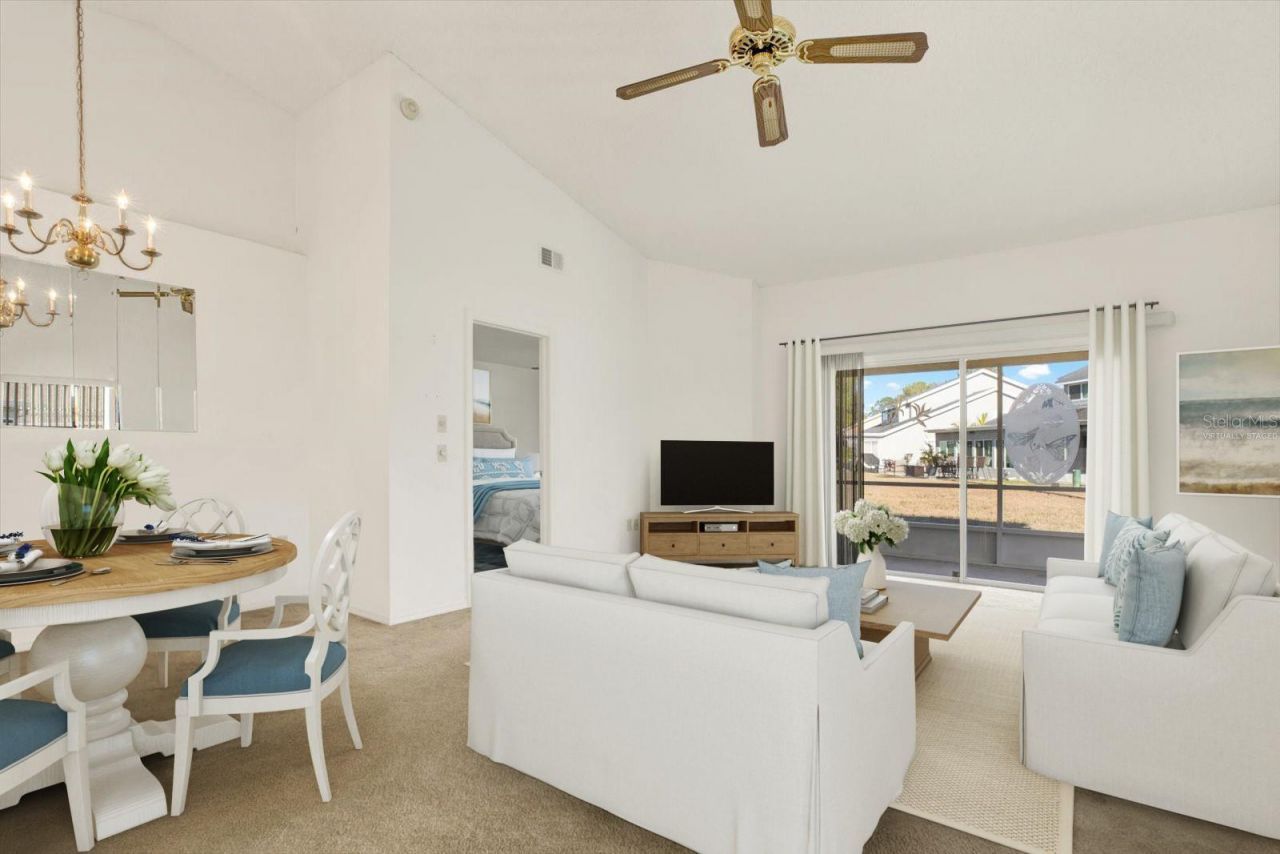 One or more photo(s) has been virtually staged. This well-maintained 2-bedroom, 2-bathroom home has been cared for by its original owners and used primarily as a seasonal retreat. Featuring a split-bedroom floor plan, two full bathrooms, and vaulted ceilings, the home offers a functional layout with a light and open feel. The attached garage provides added convenience, while the enclosed lanai is a great spot to relax and enjoy views of the spacious oversized yard. Situated on one of the larger lots in the community, the property offers plenty of potential for outdoor living, with room to create your own backyard space. Located in the pet-friendly Millpond Estates community, residents have access to amenities including a pool, clubhouse, library, fitness center, and a variety of planned activities. The HOA fee covers roof replacement, exterior painting, cable, high-speed internet, and lawn care, making for easier day-to-day living. Conveniently located near shopping, dining, medical facilities, parks, and trails, this home offers a great opportunity for a buyer to make it their own while enjoying all the benefits of the surrounding community.